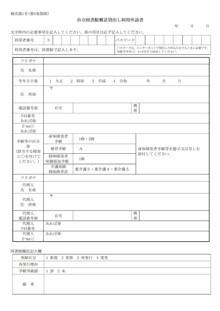 下記の申請書をダウンロードしご記入の上、手帳等の写しを添えて中央図書館宛てに送付してください。